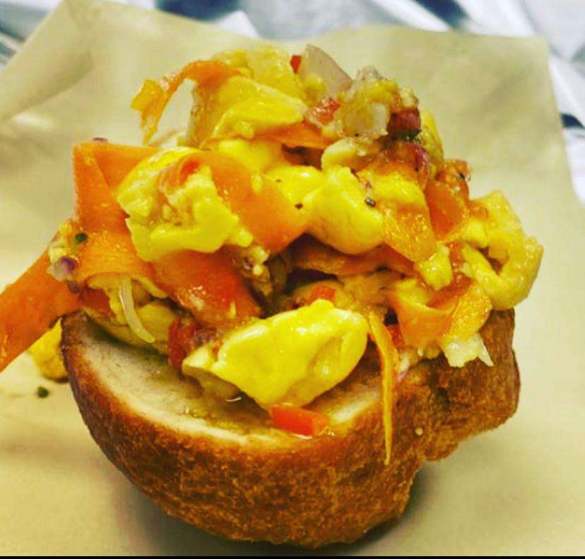 (Jerk Chicken burger with salad, hash brown and Jerk Mayo)